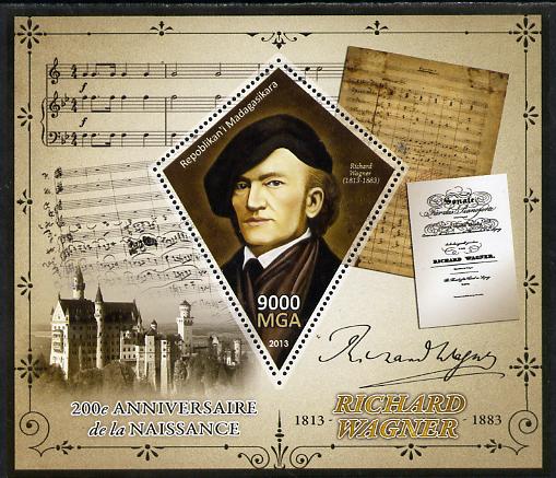 Madagascar 2013 200th Birth Anniversary of Richard Wagner perf deluxe sheet containing one diamond shaped value unmounted mint