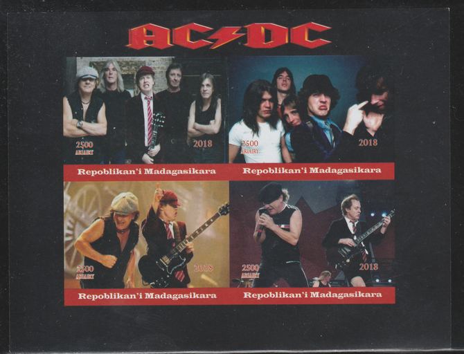 Madagascar 2018 AC-DC imperf sheetlet containing 4 values unmounted mint. Note this item is privately produced and is offered purely on its thematic appeal.