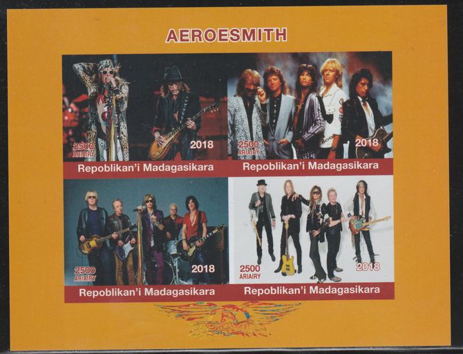 Madagascar 2018 Aeroesmith imperf sheetlet containing 4 values unmounted mint. Note this item is privately produced and is offered purely on its thematic appeal.