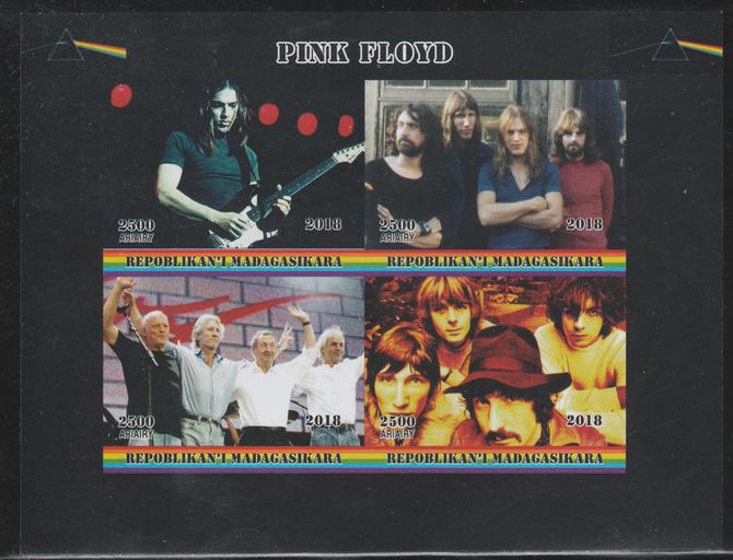 Madagascar 2018 Pink Floyd imperf sheetlet containing 4 values unmounted mint. Note this item is privately produced and is offered purely on its thematic appeal.