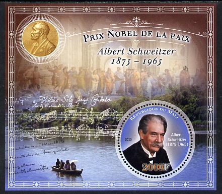 Mali 2013 Albert Schweitzer - Nobel Peace Prize perf s/sheet containing circular value unmounted mint