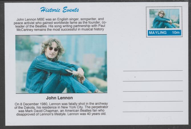 Mayling (Fantasy) Historic Events - John Lennon - glossy postal stationery card unused and fine