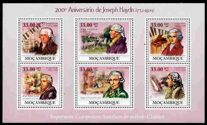 Mozambique 2009 200th Death Anniversary of Joseph Haydn perf sheetlet containing 6 values unmounted mint Michel 3392-97