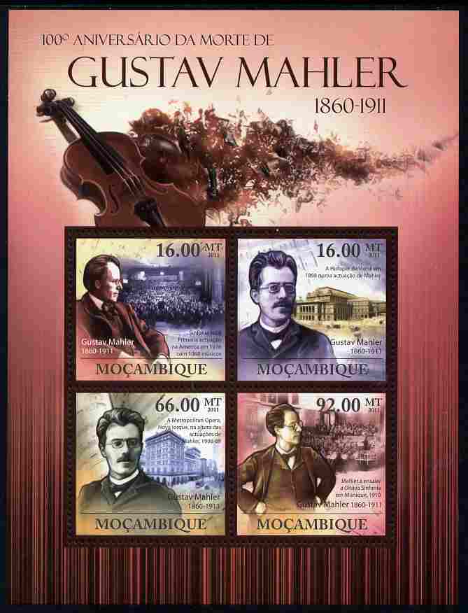 Mozambique 2011 Death Centenary of Gustav Mahler perf sheetlet containing 4 values unmounted mint