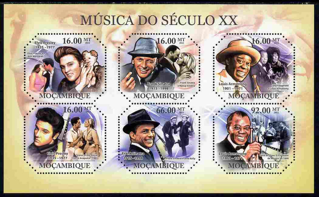 Mozambique 2011 Music of the 20th Century perf sheetlet containing 6 values unmounted mint