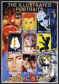 Myanmar 2001 Portraits of Music Stars #2 perf sheetlet containing set of 9 values unmounted mint