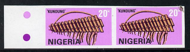 Nigeria 1989 Musical Instruments (Kundung) 20k in unmounted mint IMPERF pair (unlisted by SG and very scarce thus)