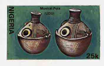 Nigeria 1990 Pottery - original hand-painted artwork for 25k value (Musical Pots) by unknown artist on card 9" x 5" endorsed C4 on back