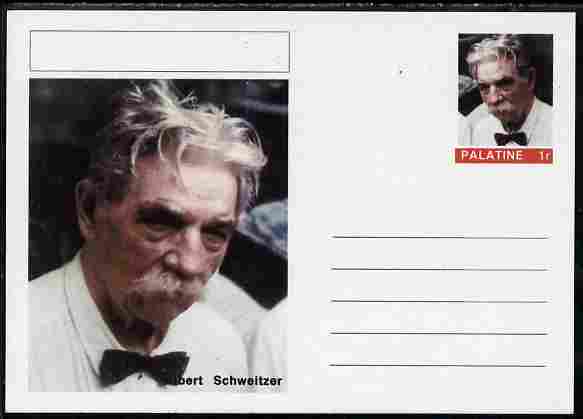 Palatine (Fantasy) Personalities - Albert Schweitzer postal stationery card unused and fine