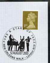 Postmark - Great Britain 2003 cover for Pubs & Stars of Jazz with illustrated New Orleans Walk cancel