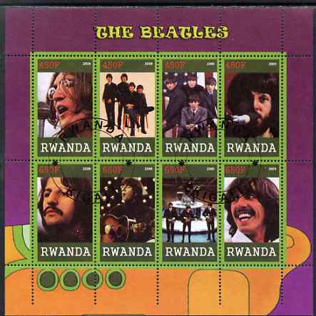 Rwanda 2009 The Beatles perf sheetlet containing 8 values cto used