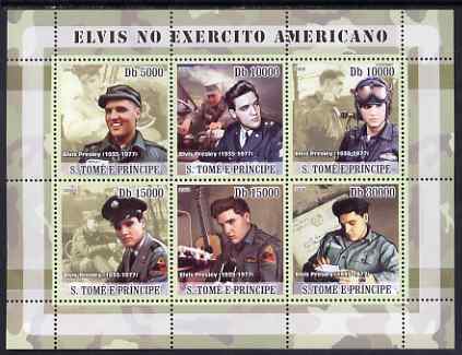 St Thomas & Prince Islands 2008 Elvis in the Army perf sheetlet containing 6 values unmounted mint