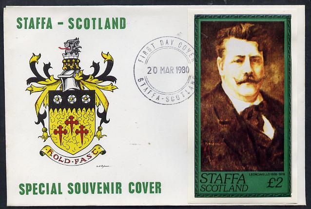 Staffa 1980 Composers (Leoncavello) imperf deluxe sheet (£2 value) on illustrated cover with first day cancels