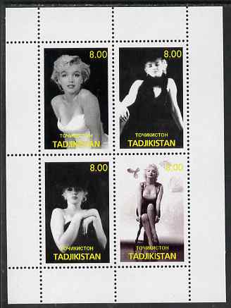Tadjikistan 2000 Marilyn Monroe perf sheetlet containing 4 values (black & white) unmounted mint