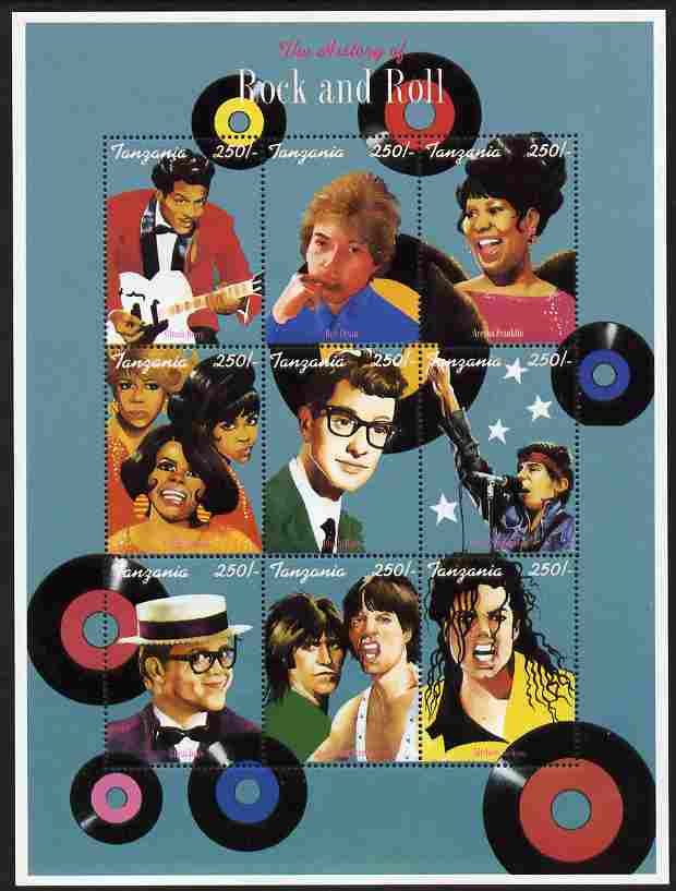 Tanzania 1995 History of Rock and Roll perf sheetlet containing 9 values unmounted mint