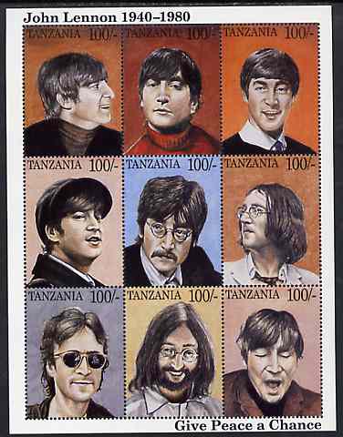 Tanzania 1995 John Lennon perf sheetlet containing 9 x 100s values unmounted mint