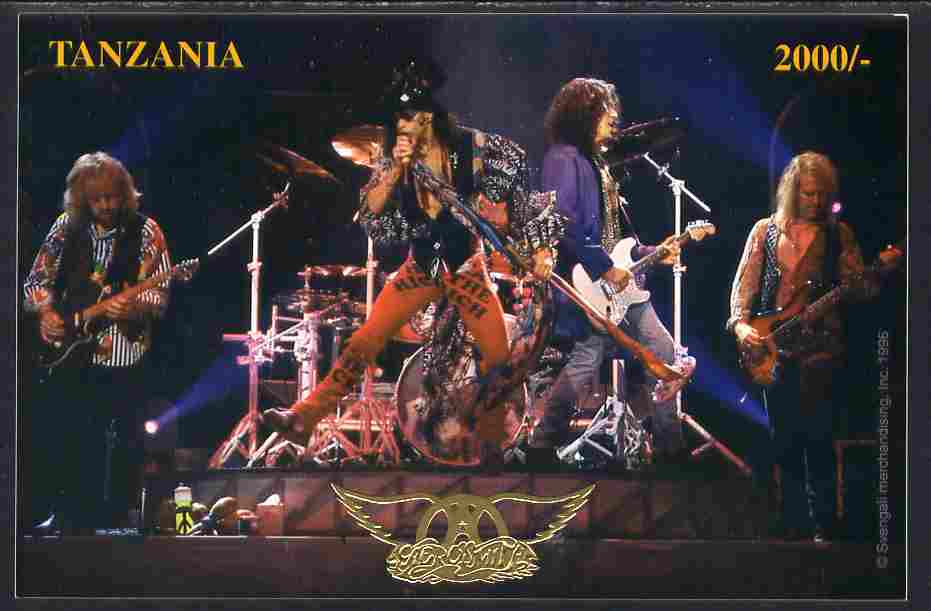 Tanzania 1996 Aerosmith #2 imperf deluxe m/sheet 2,000s value on thin card with gold embossing and numbered on reverse unmounted mint