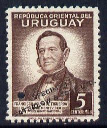 Uruguay 1942 Death Anniversary of Francisco Acuna (writer) 5c Printer's sample in brown (issued stamp was carmine-rose) overprinted Waterlow & Sons SPECIMEN with security punch hole without gum, as SG 865