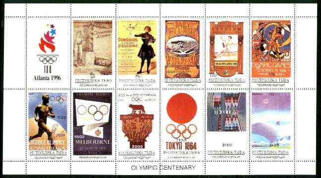 Touva 1996 Atlanta Olympic Games (Olympic Posters) perf sheetlet #1 containing 11 values plus label, unmounted mint