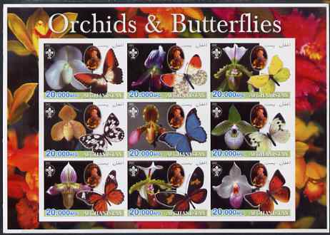 Afghanistan 2003 Orchids & Butterflies (with baden Powell) imperf sheetlet containing 9 values unmounted mint. Note this item is privately produced and is offered purely on its thematic appeal, it has no postal validity