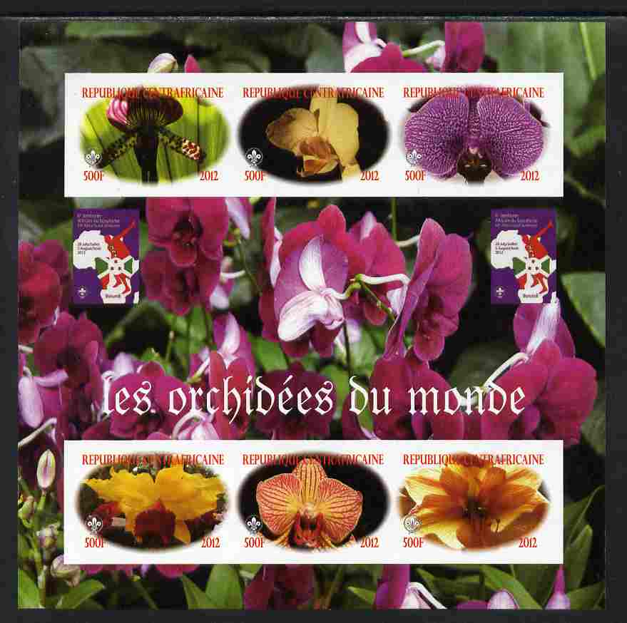 Central African Republic 2012 Orchids of the World imperf sheetlet containing 6 values unmounted mint. Note this item is privately produced and is offered purely on its thematic appeal, it has no postal validity