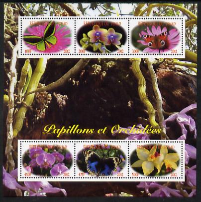 Chad 2012 Orchids & Butterflies perf sheetlet containing 6 values unmounted mint. Note this item is privately produced and is offered purely on its thematic appeal