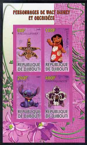 Djibouti 2009 Orchids and Disney Characters #3 imperf sheetlet containing 4 values unmounted mint
