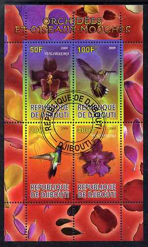 Djibouti 2009 Orchids and Humming Birds #1 perf sheetlet containing 4 values fine cto used