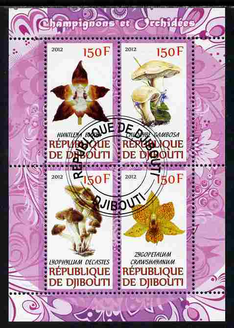 Djibouti 2012 Mushrooms & Orchids #1 perf sheetlet containing 4 values cto used