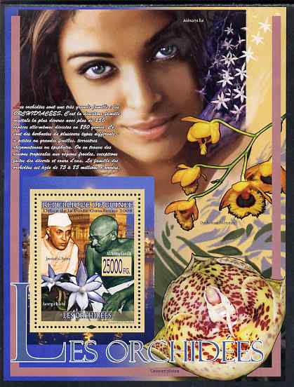 Guinea - Conakry 2009 Mahatma Gandhi and Orchids (plus Nehru) perf s/sheet unmounted mint