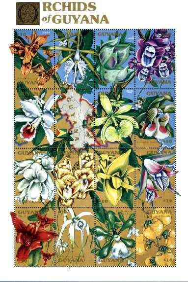 Guyana 1990 Orchids of Guyana sheetlet #02 containing set of 16 values unmounted mint, Sc #2368