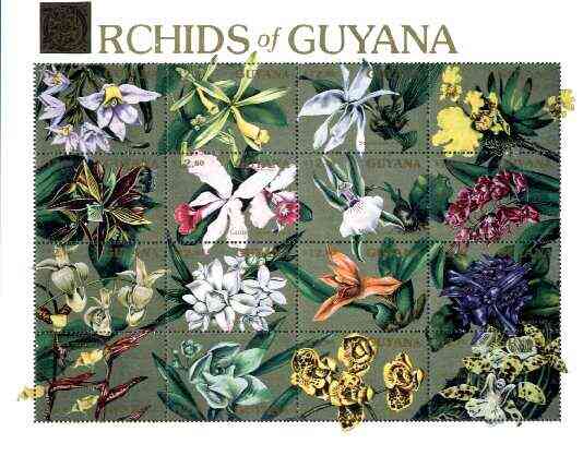 Guyana 1990 Orchids of Guyana sheetlet #04 containing set of 16 values unmounted mint, Sc #2370