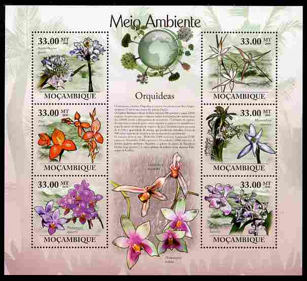 Mozambique 2010 The Environment - Orchids perf sheetlet containing 6 values unmounted mint Michel 3475-80