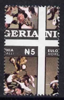 Nigeria 1993 Orchids 5n with horiz & vert perfs misplaced (divided along perfs showing parts of 4 stamps) unmounted mint as SG 666*