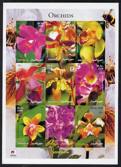 Somalia 2003 Orchids imperf sheetlet containing 9 values (with Bee & Phila Korea imprint in border) unmounted mint. Note this item is privately produced and is offered purely on its thematic appeal, it has no postal validity