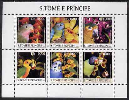 St Thomas & Prince Islands 2003 Parrots & Orchids perf sheetlet containing 6 values unmounted mint Mi 2085-90