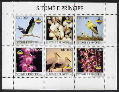 St Thomas & Prince Islands 2003 Storks & Orchids perf sheetlet containing 6 values unmounted mint Mi 2049-54