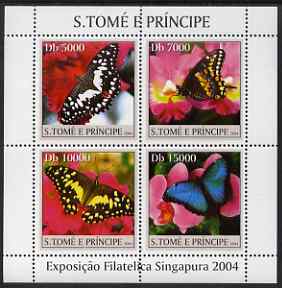 St Thomas & Prince Islands 2004 Butterflies & Orchids perf sheetlet containing 4 values unmounted mint, Mi 2603-06