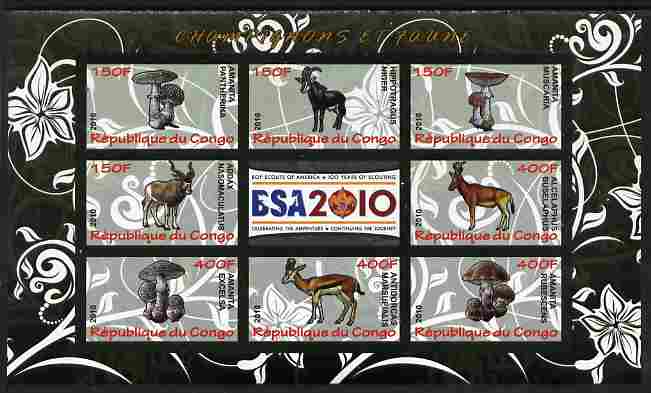 Congo 2010 Mushrooms & Fauna #04 imperf sheetlet containing 8 values plus Scouts label unmounted mint