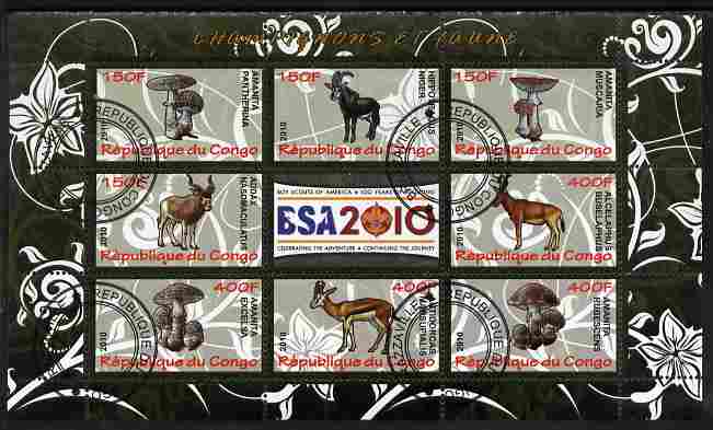 Congo 2010 Mushrooms & Fauna #04 perf sheetlet containing 8 values plus Scouts label fine cto used