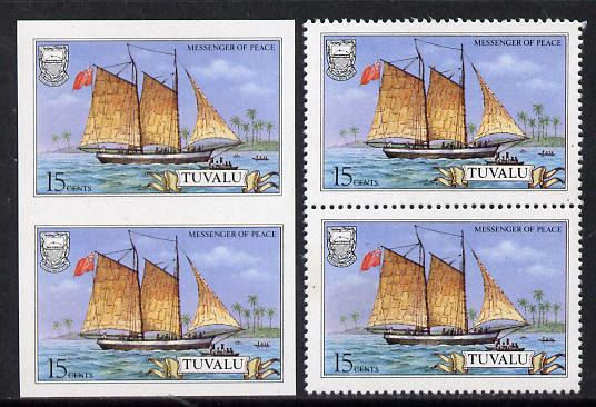Tuvalu 1986 Ships #3 Schooner Messenger of Peace 15c imperf pair plus normal pair (as SG 377)
