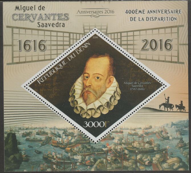 Benin 2016 Miguel de Cervantes perf m/sheet containing one diamond shaped value unmounted mint