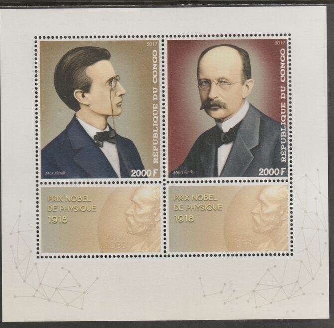Congo 2017 Max Planck perf sheet containing two values plus two labels unmounted mint