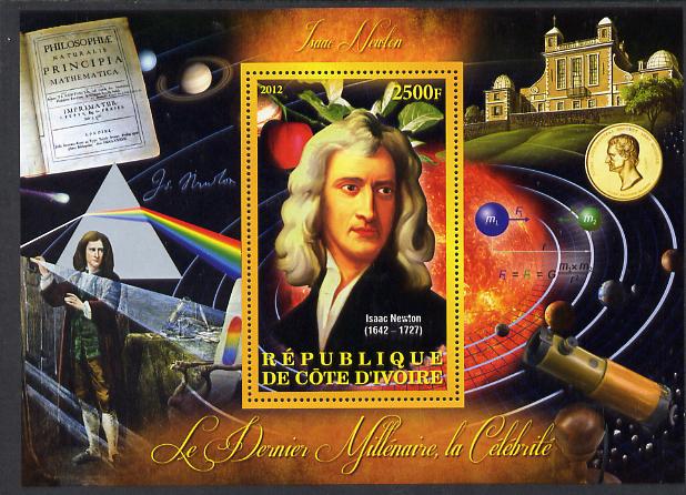 Ivory Coast 2012 Personalities of the Last Millennium #04 perf sheetlet containing 1 value unmounted mint (Isaac Newton)
