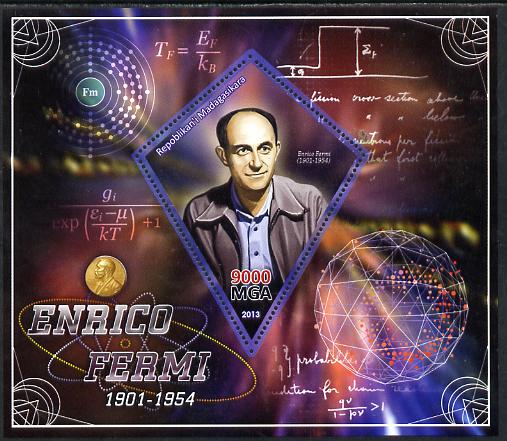 Madagascar 2013 Enrico Fermi (physicist) perf deluxe sheet containing one diamond shaped value unmounted mint