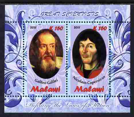 Malawi 2011 Scientists - Galilei & Copernicus perf sheetlet containing 2 values unmounted mint