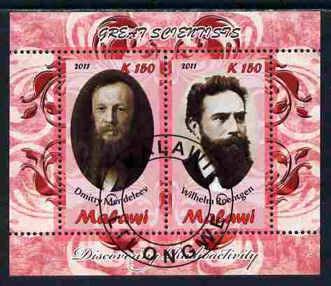 Malawi 2011 Scientists - Mendeleev & Roentgen perf sheetlet containing 2 values cto used