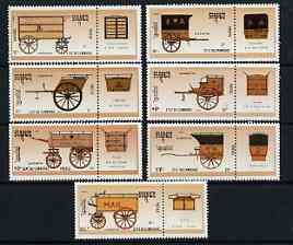 Cambodia 1990 Stamp World London '90 Stamp Exhibition (Horse-drawn Mail Transport) perf set of 7 each se-tenant with label unmounted mint, SG 1050-56