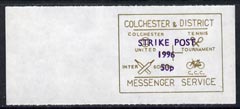 Cinderella - Great Britain 1996 Colchester & District Messenger Service rouletted label (gold on white) showing Football, Tennis, Cricket & Bicycle opt'd Strike Post 50p 1966 (tete-beche pairs price x 2) unmounted mint