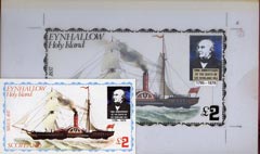 Eynhallow 1979 Rowland Hill (Ships - Sirius 1837) - Original artwork for deluxe sheet (£2 value) comprising coloured illustration on board (165 mm x 95 mm) with overlay, plus issued label
